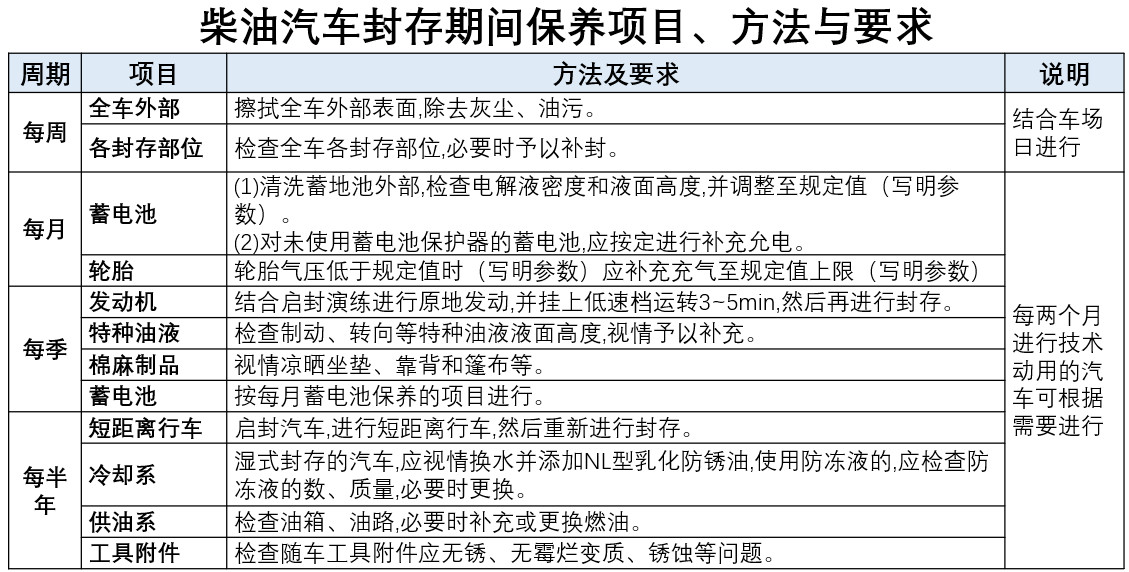 2.具體要求:汽車封存期間保養項目、方法和要求