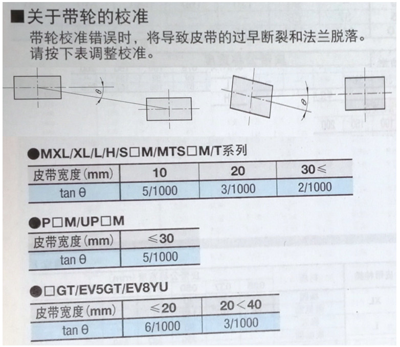 對于同步帶的平行度推薦不超過 0.25°,這個是比三角帶偏移量要求更高,所以必須在安裝和測量的時候保持準確。