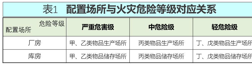 表1 配置場所與火災(zāi)危險等級對應(yīng)關(guān)系