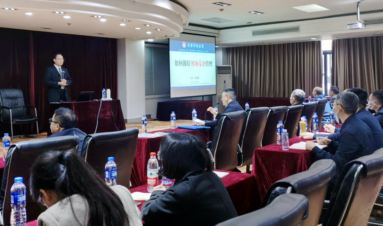 隨后,成都華標(biāo)企管的蔣良君老師就《如何做好現(xiàn)場設(shè)備管理》進(jìn)行了專題培訓(xùn)。本次課程主要內(nèi)容有:設(shè)備管理概述、現(xiàn)場管理、買對設(shè)備、規(guī)范使用、做好保養(yǎng)及潤滑、做好點檢、做好設(shè)備故障與檢修管理、做好專項管理、用好信息化、檢查促落實。
